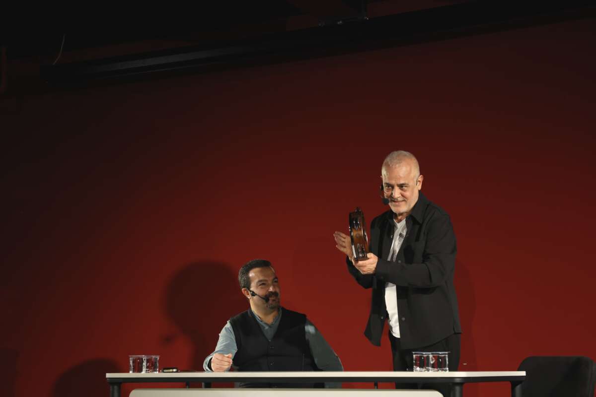 Söyleşiye kasası bakır, üstü gümüş kaplamalı özel bir darbukasını da getiren Emin Bolat, dinleyicilere kısa bir icra sundu. Programın sonunda Nilüfer Belediye Başkan Yardımcısı Bukle Erman, Emin Bolat’a teşekkür ederek hediye takdim etti.