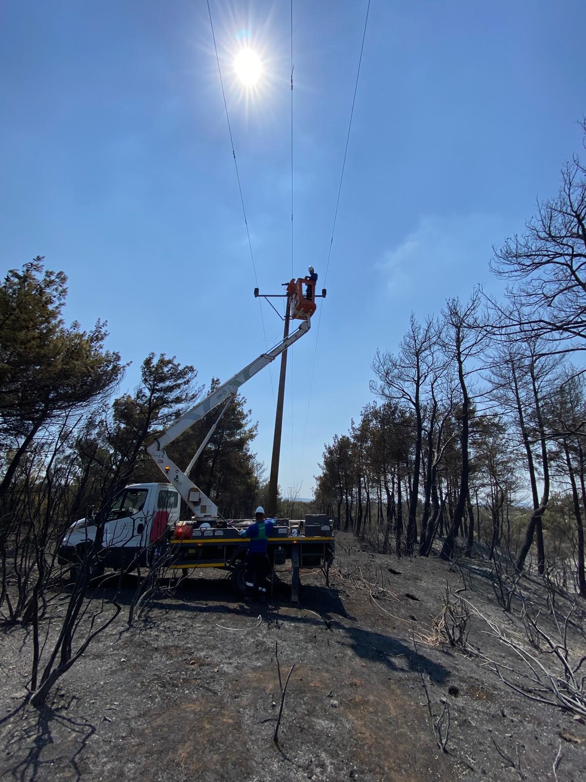 Türkiye, peş peşe çıkan orman yangınlarına karşı yoğun bir mücadele yürütüyor. UEDAŞ, enerji altyapısının güvenliğini sağlamak amacıyla sahada çeşitli müdahaleler gerçekleştiriyor. Şirket faaliyet gösterdiği Çanakkale’de yangından etkilenen bölgelerde, şebekenin kontrol ve onarım çalışmalarına başladı. Aynı zamanda yangında görevli ekiplerin toplanma alanlarına da sepetli araçlarla projektör ve jeneratör desteği sağlanıyor.