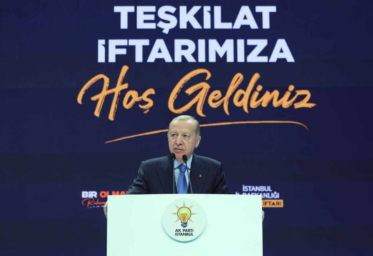 Cumhurbaşkanı Recep Tayyip Erdoğan, Atatürk Havalimanı Millet Bahçesi’nde AK Parti İl Teşkilatı İftar Programı’na katıldı. Cumhurbaşkanı Erdoğan programda yaptığı konuşmada, “Ramazan, hepinizin çok iyi bildiği gibi yardımlaşmanın, dayanışmanın ve hoşgörünün zirveye ulaştığı bir aydır. Belediyelerimiz, hayırseverlerimiz, sivil toplum örgütlerimiz bilhassa bu mübarek günlerde her zamankinden daha yoğun olarak yardımlaşma ve dayanışma faaliyetlerine ağırlık veriyor. AK Parti olarak biz de en tepeden mahalle temsilcimize kadar sahur ve iftar programlarında milletimizle beraber oluyoruz. Kimseyi ayırmadan, genç yaşlı demeden insanımızın derdiyle dertleniyor, muhabbetimizi güçlendiriyor, birlik ve beraberliğimizi perçinliyoruz. İstanbul teşkilatımızın da tam kadro sahada olduğunu, Ramazan-ı Şerif’i hakkını vererek idrak etme çabasında olduğunu memnuniyetle müşahede ediyorum. Teşkilatımızı yaptıkları güzel çalışmalardan, örnek faaliyetlerinden ötürü burada tebrik ediyor, her bir kardeşime teşekkür ediyorum” dedi.