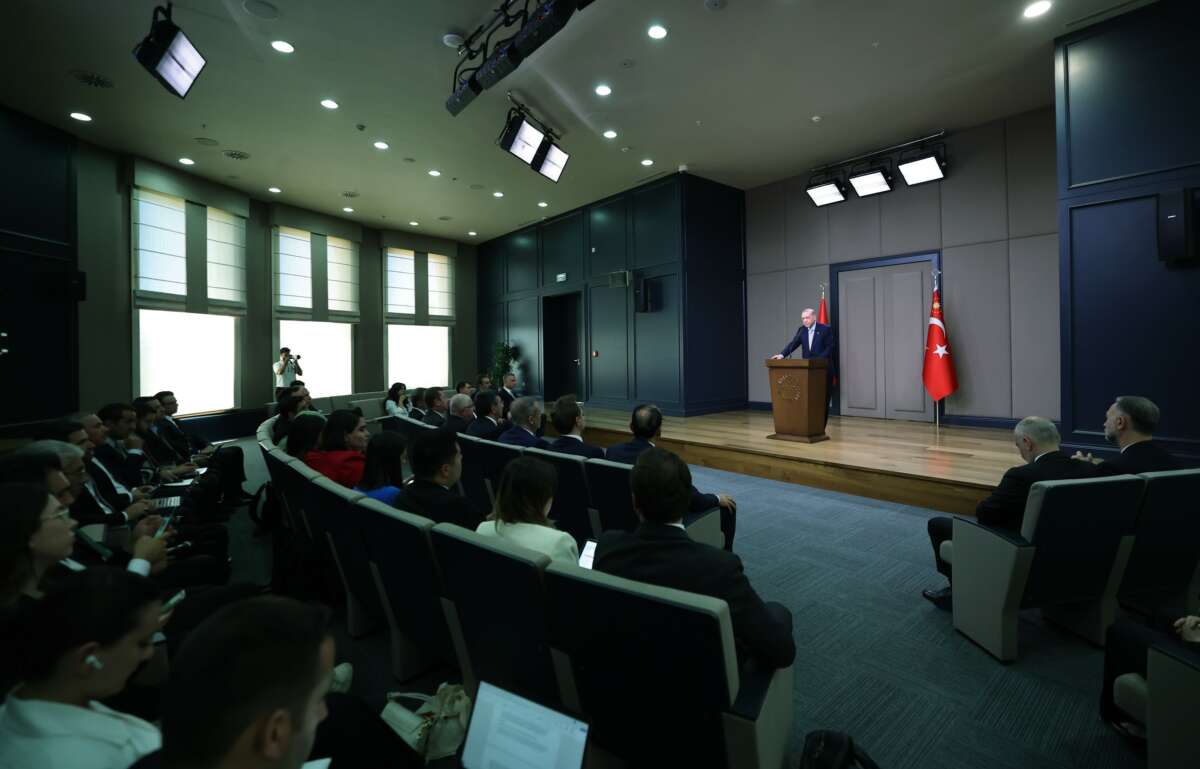 Gerek zirvede gerek ikili görüşmelerinde Netanyahu hükümetinin Filistin halkına yönelik katliamlarına da dikkat çekeceklerini vurgulayan Erdoğan, “21 aydır devam eden işgal, silah ve yıkım politikasının bir an önce son bulması gerektiğinin altını çizeceğiz. Öte yandan biliyorsunuz 13 Haziran’dan beri bölgemizde tansiyon iyice tırmandı. İsrail’in İran’a saldırılarıyla başlayan süreçte en başından bu yana müzakereleri esas alan girişimlerimiz oldu. Sayın Trump ve Sayın Pezeşkiyan ‘ın da aralarında olduğu birçok liderle görüştük. İstanbul’da İslam İşbirliği Teşkilatı üyesi ülkelerin dışişleri bakanlarını bir araya getirdik” ifadelerini kullandı.