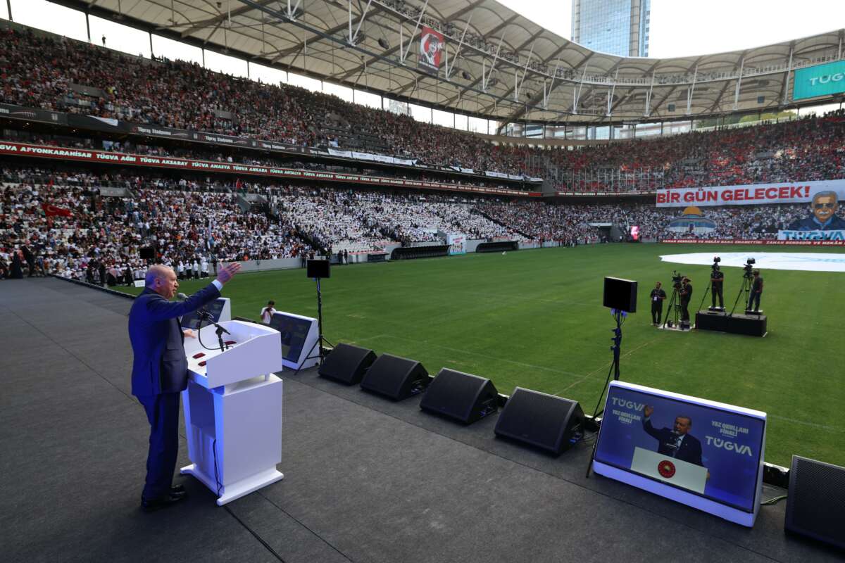 Erdoğan, “Milletimizin hasretini çektiği büyük ve güçlü Türkiye’ye kavuşmamıza çok az kaldı. Zulümle, krizle, çatışmayla boğuşan coğrafyamızda barış rüzgarlarının esmesine inanın çok az kaldı. Allah’ın izniyle sizlere terörün olmadığı her metrekaresinde huzurun, güvenliğin, refahın, kardeşliğine kemer olduğu bir Türkiye’yi teslim edeceğiz. Son nefesimize kadar sizlerin hizmetinde olmaya inşallah devam edeceğiz” şeklinde konuştu.