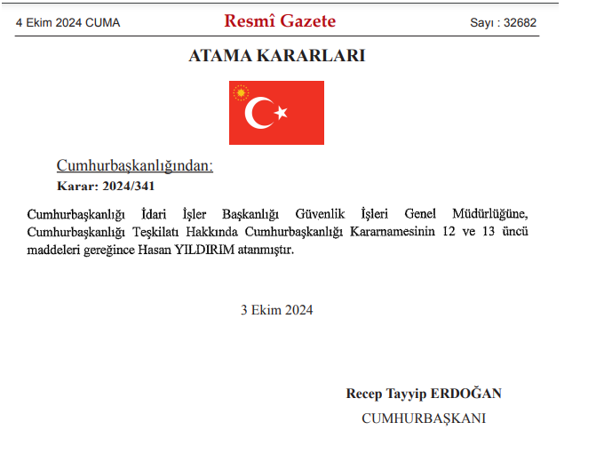 Danıştay üyeliğine Cumhurbaşkanlığı İdari İşler Başkanlığı Güvenlik İşleri Genel Müdürü Yusuf Karaloğlu’nun seçilmesine ilişkin Cumhurbaşkanı kararı, Resmi Gazete’de yayımlandı.