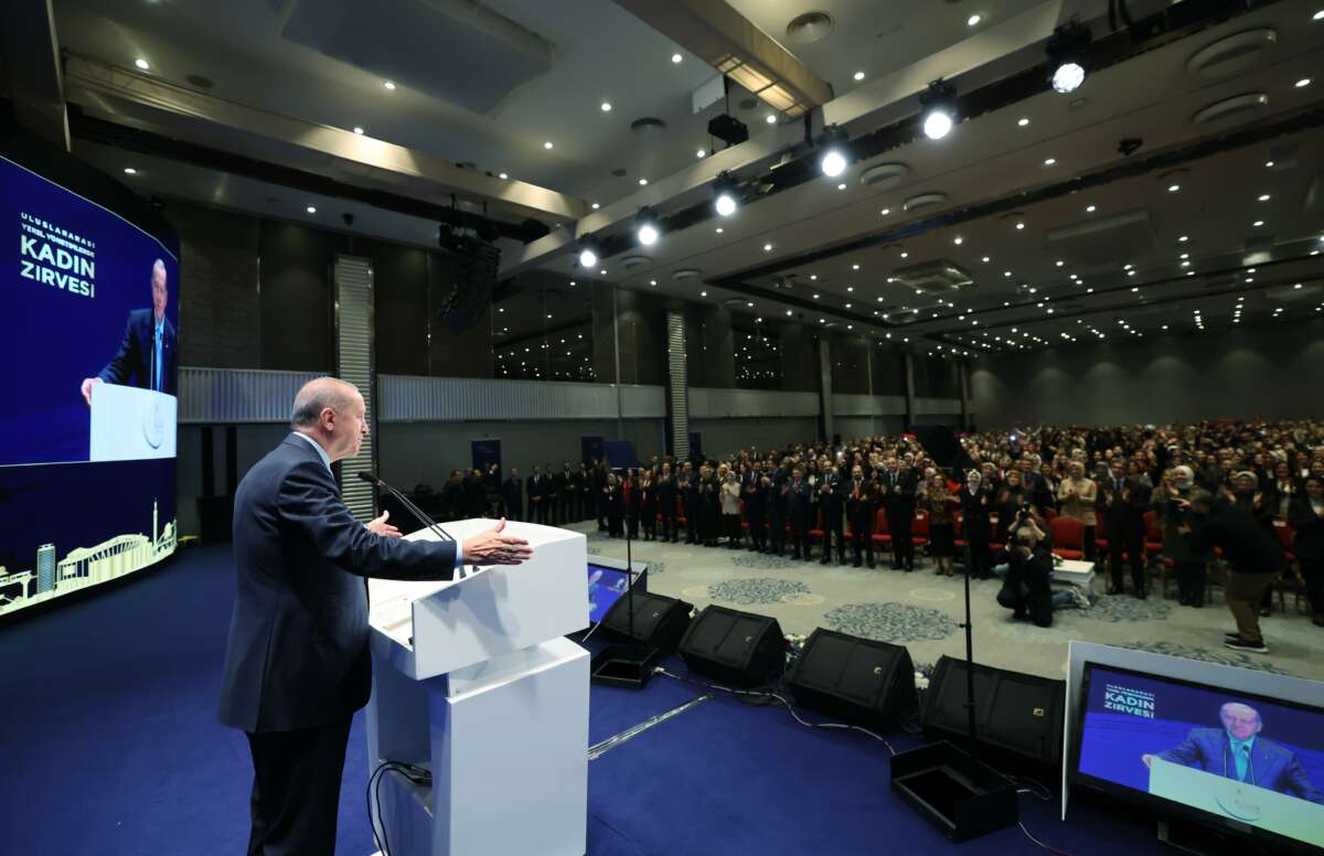 Cumhurbaşkanı Recep Tayyip Erdoğan, AK Parti Kadın Kolları Başkanlığı tarafından İstanbul’da düzenlenen “Uluslararası Yerel Yönetimlerde Kadın Zirvesi”ne katıldı. Programda konuşan Cumhurbaşkanı Erdoğan, kadının omuzlarındaki yükün her geçen gün arttığına dikkat çekerek, “Kadınlardan bir taraftan geleneksel sorumluklarını yerine getirmeleri, diğer taraftan çalışma hayatı içinde bizzat yer alarak aile bütçesine destek olmaları bekleniyor. Kadınlar eskiden olduğu gibi hem aileyi çekip çevirmeye çalışırken hem de çalışma hayatının zorluklarını omuzlamak zorunda kalıyor. Savaşların, çatışmaların, ekonomik krizlerin yükünü herkesten fazla kadınlar çekiyor. İdeal ve adil bir toplumsal hayat ancak kadınların söz ve hak sahibi olmaları ile mümkündür. Şehir hayatı ve yerel yönetimlerde de kadınların etkin olmaları önemlidir. Her şehir aynı zamanda o insanların yuvasıdır. Kadının olduğu yerde barış olur, kadının olduğu yerde birlik olur, kadının olduğu yerde dirlik olur. Kadın elinin değdiği yerde huzur ve düzen olur. Kadının güçlü olduğu yerde gelişme olur, ilerleme olur, inşa olur. Tıpkı medeniyetimiz gibi şehirlerimizin de anaç karakterde olması işte bu hakikatin tezahürüdür. Kadınların kurucu aklı o kadar kıymetli ki bunu gündelik hayatta eşlerden birinin vefat ettiği ailelerde çok net görebiliriz. Eşlerden evin erkeği rahmetli olmuşsa kadın dirayetiyle, şefkatiyle aileyi kanatları altına alarak tüm bireylere sahip çıkar. Eşi vefat ettikten sonra o ocak sönmüyorsa başında kadın olduğu içindir. O aile dağılmıyorsa kadının kurucu ve kuşatıcı fıtratı sayesindedir. Toplumun çekirdeği olan aile nasıl kadınların fedakarlıkları sayesinde ayakta duruyorsa, toplumsal hayatta da şehirler, ülkeler ve milletler kadınlar sayesinde ayakta durur. Kemal Tahir’in ifadesiyle ‘devletimizi devlet ana yapan kadınlardır’” şeklinde konuştu.
