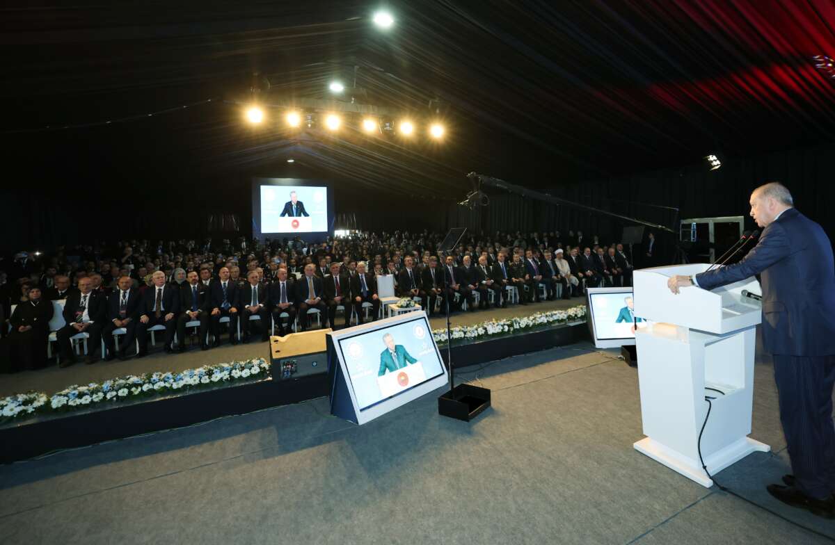 Savunma ve havacılık ihracatında her geçen yıl yeni rekorlar kırıldığını söyleyen Cumhurbaşkanı Erdoğan, “Bakınız sadece geçtiğimiz sene savunma ihracatımız bir önceki yıla kıyasla yüzde 48 oranında artarak 10 milyar doları geride bıraktı. Bu rakam -dikkatinizi çekerim- 2002’de yalnızca 248 milyon dolardı. Halihazırda savunma ihracatında dünyanın en büyük 11. ülkesiyiz. 2028’de 11 milyar dolarlık ihracat hedefimize ulaşarak, savunma ve havacılık ihracatında inşallah dünyada ilk 10 ülke arasına gireceğiz. 2025 sonu itibariyle savunma sanayindeki proje hacmimiz 100 milyar doların, proje sayımız ise 1.400’ün üzerine çıktı. Peki biz bu başarıları nasıl elde ettik? Her şeyden önce kendimize inandık. Aziz milletimize güvendik. Bu ülkenin gençlerine yatırım yaptık ve onların önünü açtık. Diğerleri yapabiliyorsa biz neden yapamayalım diyerek bu yola çıktık. Tam bağımsız Türkiye idealini savunma alanında kararlı bir devlet politikası olarak benimsedik ve uyguladık. Kritik teknolojiler başta olmak üzere sistemlerimizi, platformlarımızı, altyapımızı, sürekli gelişen, sürekli yenilenen bir teknoloji ekosistemine dönüştürdük” dedi.
