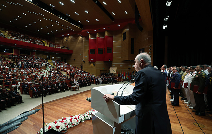 Cumhurbaşkanı Recep Tayyip Erdoğan, Milli Savunma Üniversitesi Kurmay Subaylar Mezuniyet Töreni’ne katıldı. Cumhurbaşkanı Erdoğan burada yaptığı konuşmada, “Bugün 80’i kardeş ülkelerden 241 subayımızı mezun ediyoruz.