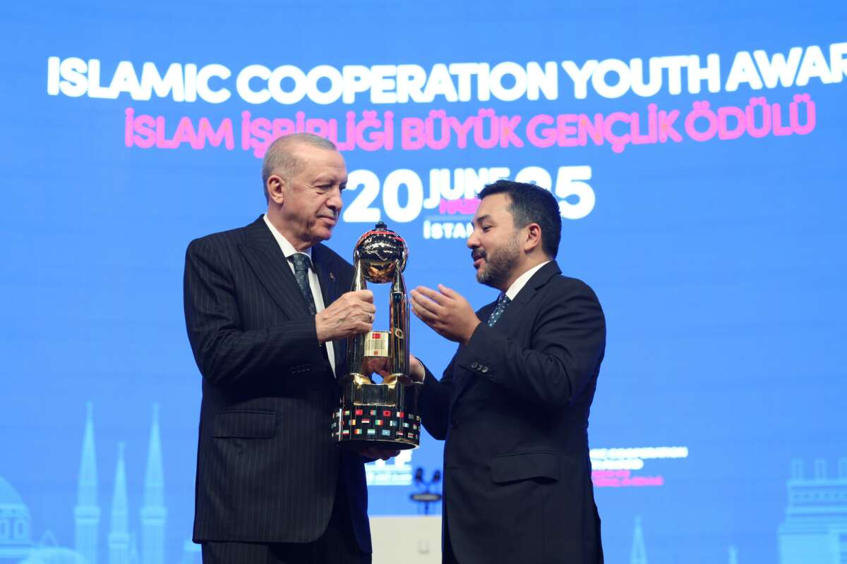 Konuşmasının sonunda birlik ve beraberlik mesajı veren Cumhurbaşkanı Erdoğan, “Sevgili gençler, ayrışmayacağız, birbirimize düşmeyeceğiz, aramıza sahte ve sanal duvarlar örmeyeceğiz. Kardeşimizi sadece Allah için sevecek, birbirimize yoldaş olacağız. Unutmayın, inanıyorsanız muhakkak üstünsünüz. Bu müjdeye tüm kalbimizle inanacağız. Zorlukla beraber mutlaka bir kolaylığın olduğundan asla şüphe etmeyeceğiz. Bilhassa sizlerin birlik olması, birlikte hareket etmesi, kenetlenmesi çok ama çok önemli. Şunu lütfen aklınızdan çıkarmayın; dillerimiz, renklerimiz, mezheplerimiz, kökenlerimiz farklı olabilir. Hepimizin devleti, milleti, doğup büyüdüğü topraklar farklı olabilir. Ekonomik statülerimiz, gelirimiz, eğitim seviyelerimiz farklı olabilir. Dünya görüşümüz, hayat tarzımız, fikri yapımız aynı şekilde farklı olabilir. Bunların hepsi kıymetlidir, anlamlıdır, bizi biz yapan önemli hasletlerdir. Ama biz bu kimliklerimizden öte unutmayın, önce Müslümanız. Müslümanlık hepimizin en üst kimliğidir. Asya’dan Avrupa’ya, Afrika’dan Latin Amerika’ya kadar nerede yaşarsak yaşayalım, ortak paydamız Din-i Mübin-i İslam’dır. Cenabı Allah’a kul, Habib-i Kibriya Efendimize ümmet olmaktan daha büyük bir şeref, daha büyük bir izzet bu dünyada olamaz. Allah’a sonsuz hamdü senalar olsun, bizler bununla müesser olmuş insanlarız. Her birinizden meseleye bu şuurla yaklaşmanızı istiyorum. Sizlerden bilginizle, tecrübenizle, yüksek seciyeniz ve kardeşlik bilincinizle, aynı vücudun birer uzvu gibi hareket etmenizi bekliyorum. Siz gençlerimizden, şu muhabbet halkanızı daha da genişletmenizi özellikle rica ediyorum. Tablo ortada, bir olacağız, iri olacağız, diri olacağız, kardeş olacağız. Mazlumun zalimden hesap soracağı, güçsüzün güçlüden hakkını alacağı, aydınlığın karanlığa galebe çalacağı günlerin çok yakın bir zamanda, inşallah, sizlerle birlikte geleceğine inanıyorum. Rabbim yar ve yardımcınız olsun diyorum. Bu düşüncelerle İslam İşbirliği Gençlik Forumu’nun bir kez daha hayırlara vesile olmasını diliyorum. İslam İşbirliği Gençlik Forumu Büyük Gençlik Ödülü’nün şahsıma tevdi edilmesinden memnuniyet duyuyorum. Forumun düzenlenmesinde emeği geçen her bir kardeşime, programa teşrif eden her bir misafirimize tekrar teşekkür ediyorum. Ülkenize döndüğünüzde ailelerinize ve dostlarınıza bizlerden selam götürmenizi istirham ediyorum. Hepinizi sevgiyle, saygıyla selamlıyor, Allah’a emanet olun diyorum. Sağ olun, var olun, kalın sağlıcakla” ifadelerini kullandı.
