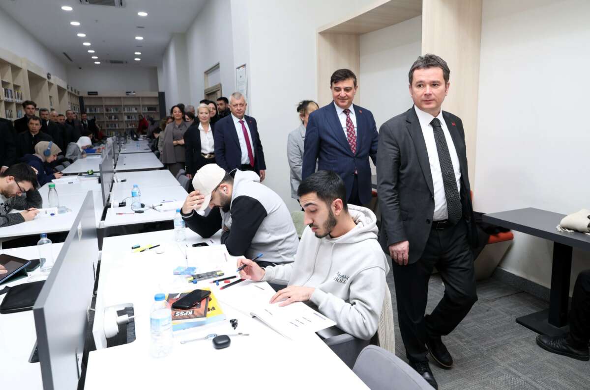 Programda ilk olarak Hasan Âli Yücel Dünya Klasikleri Kütüphanesi’ni gezen protokol üyeleri, kütüphanede yürütülen çalışmalar hakkında bilgi aldı. Kitaplarla iç içe gerçekleştirilen inceleme gezisinin ardından protokol, Osmangazi Gösteri Merkezi’ne geçerek Kütüphane Haftası kapsamında bir hafta boyunca sürecek etkinliklerin açılış törenini yaptı.