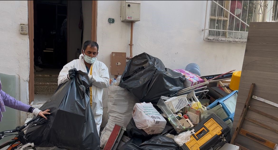Bursa‘nın Yıldırım ilçesi Yeşilyayla Mahallesi’nde ihbar üzerine olay yerine belediye ve polis ekipleri sevk edildi. Uzun süredir çevreye rahatsızlık veren kokuların kaynağı olduğu öğrenilen evde Yıldırım Belediyesi ekiplerince yapılan temizlik çalışmasında, kapıdan adım atacak yer kalmayacak şekilde yığılmış çöpler olduğu görüldü.