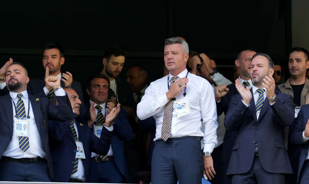 İki başkan adayı da tribünden birlikte inerek, Maraton Alt tribünü önünde kurulan platforma doğru yürüdü. Bu esnada tribünlerde yer alan kongre üyeleri de tezahüratlar yaptı. Fenerbahçe Yüksek Divan Kurulu Başkanı Şekip Mosturoğlu ile birlikte aynı masaya oturdu. Şekip Mosturoğlu’nun seçim sonuçlarını açıklamasının ardından Koç, Saran’ı tebrik etti.