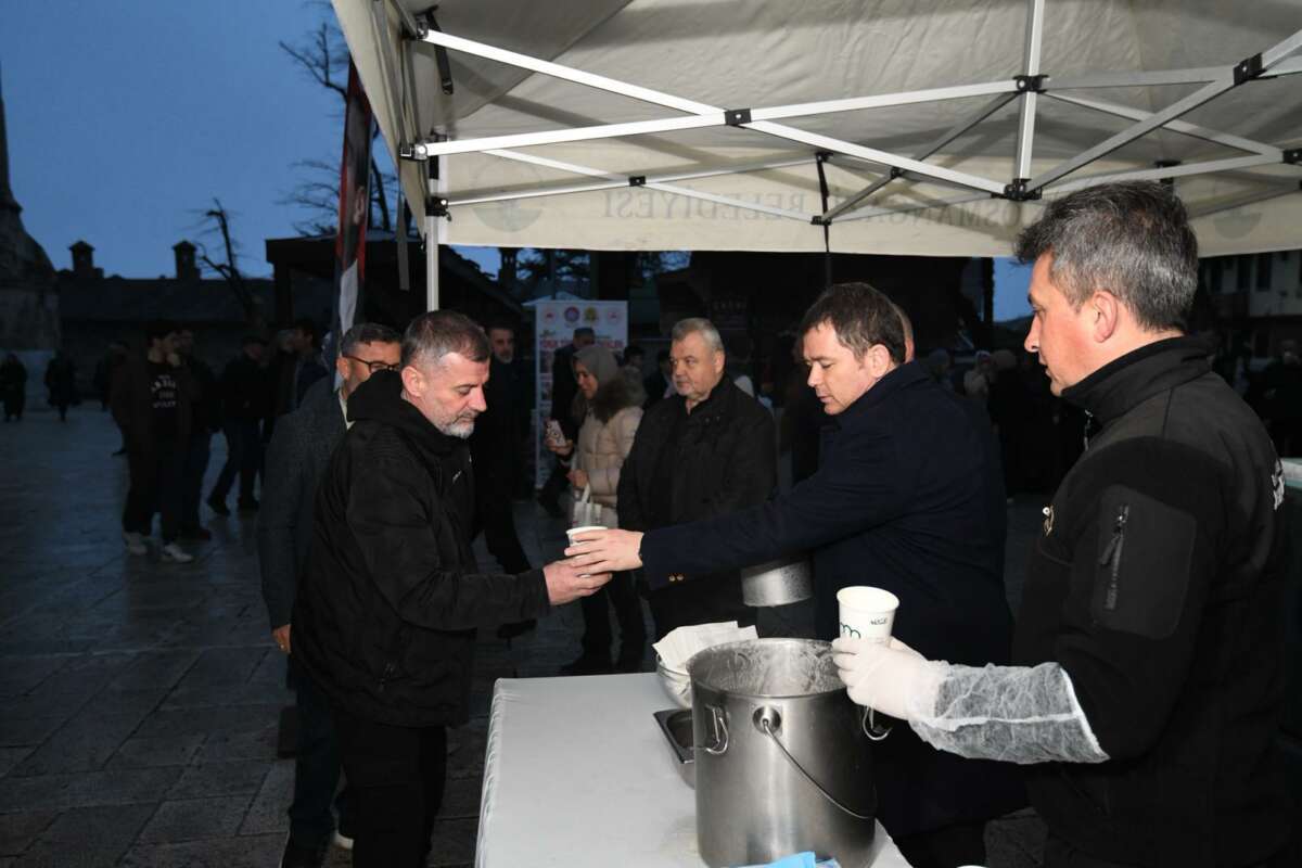 Sabah namazı ve fetih duasının ardından vatandaşlarla bir araya gelen Başkan Aydın, Ulu Cami avlusunda vatandaşlara çorba ikramında bulundu.