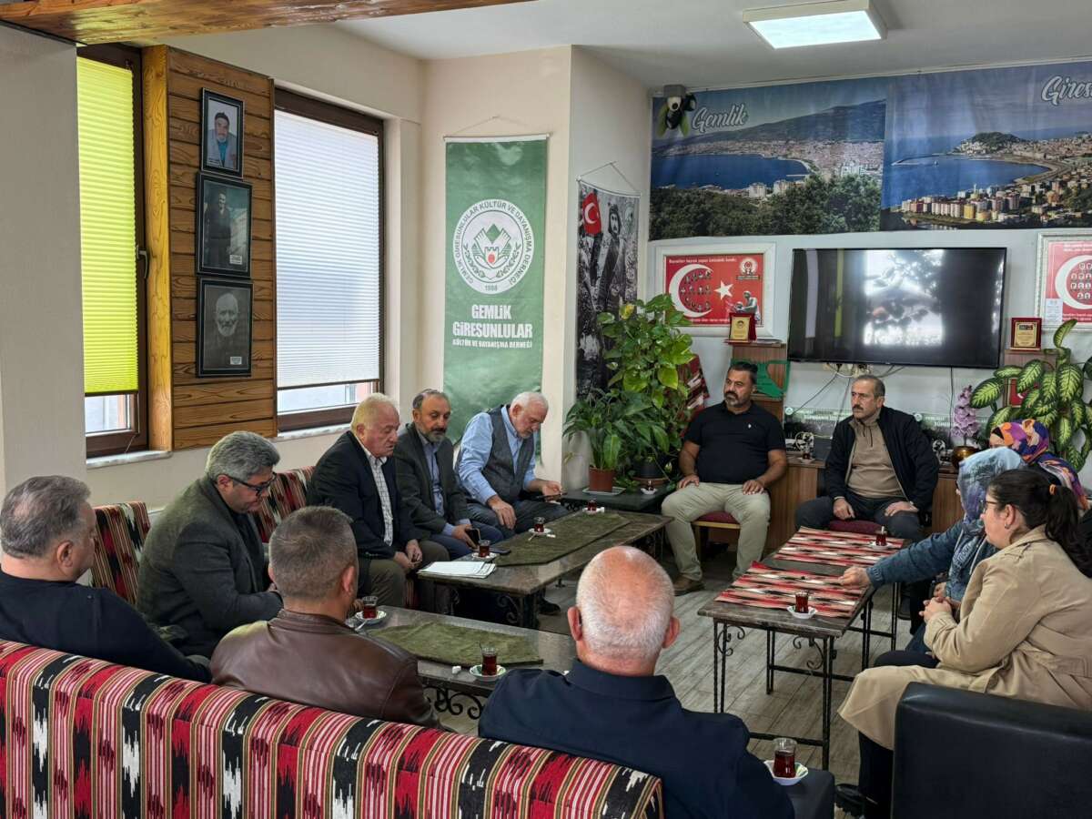 Gemlik Giresunlular Derneği Başkanı Halil Ataş ve yönetiminin hazır bulunduğu toplantıya Gemlik Belediye Başkan Yardımcısı Durmuş Uslu, İş insanı Mustafa Yiğit, Hamidiye mahallesi Muhtarı Mehmet Çiçek, TR Düşünce Kulübü Temsilcisi Gencay Yılmaz, basın mensupları ve üyeler katıldı.