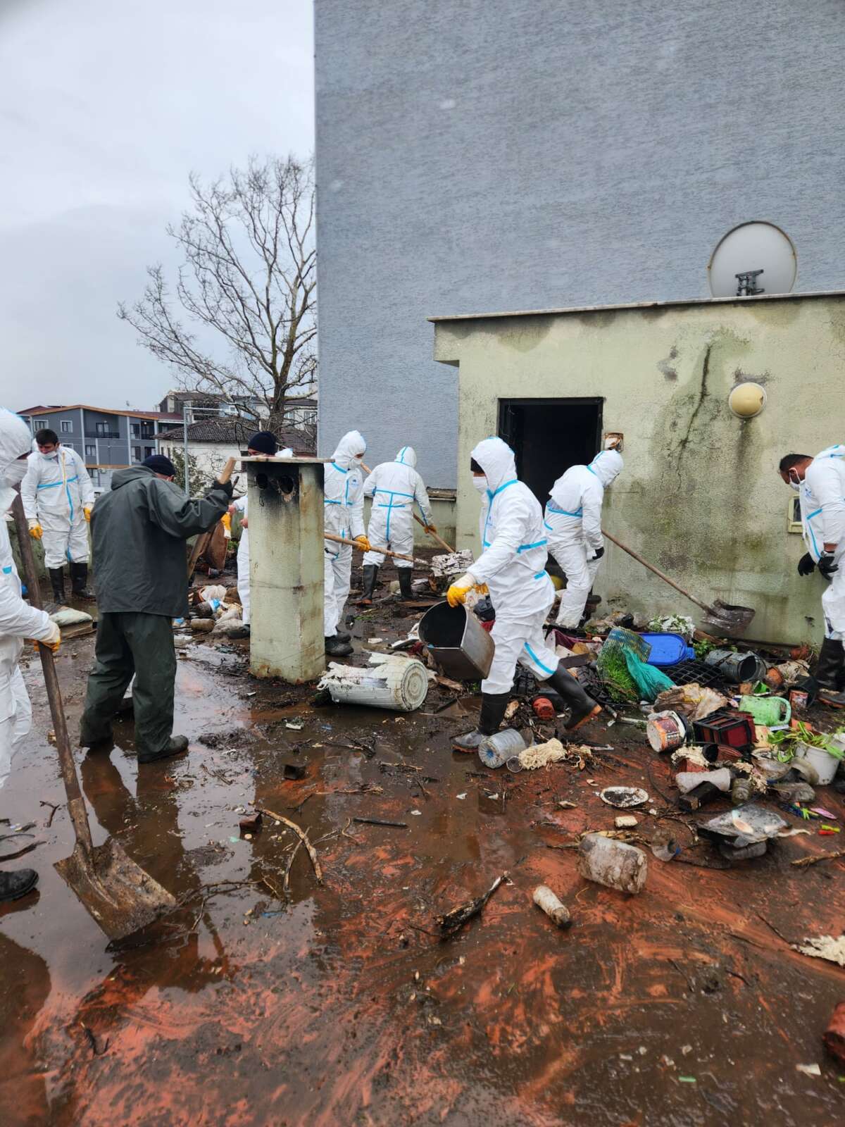 Evin tamamen boşaltılmasının ardından, biriken çöplerin neden olduğu bakteri, haşere ve kötü koku oluşumunu engellemek amacıyla binanın içi ve çevresi detaylı bir şekilde ilaçlanarak dezenfekte edildi.
