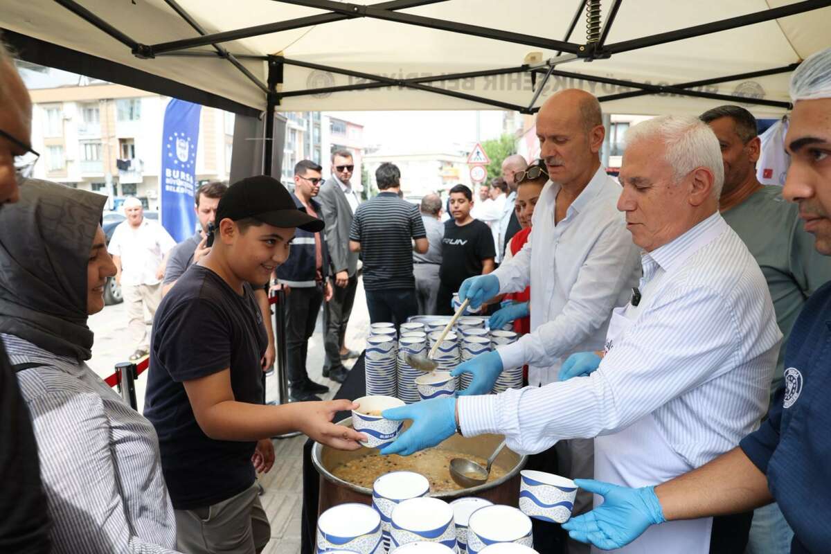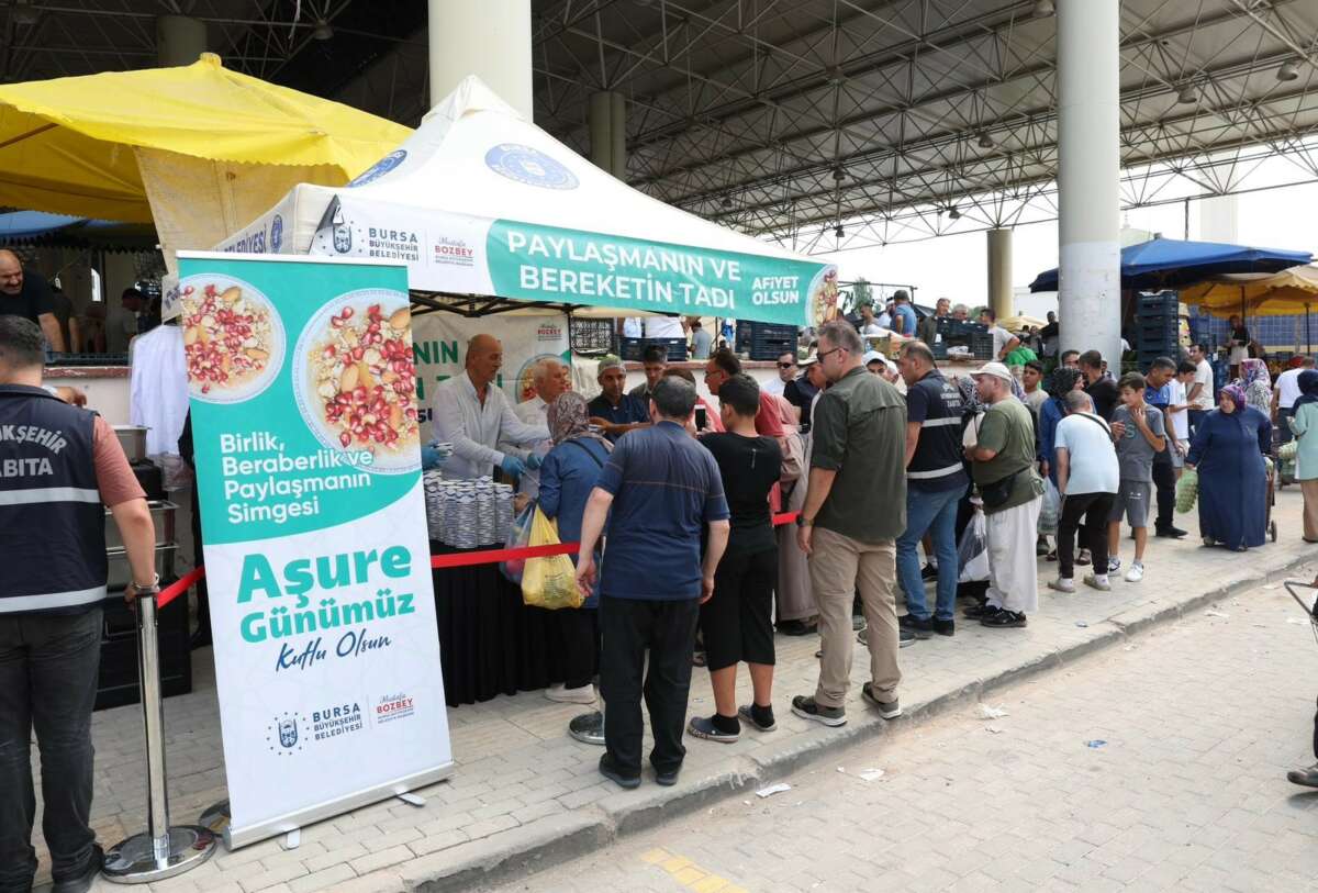 Bursa Büyükşehir Belediyesi tarafından Hicri takvime göre yılın birinci ayı kabul edilen Muharrem ayı dolayısıyla kentin 17 ilçesinde aşure dağıtımı yapılıyor. Bursa Büyükşehir Belediye Başkanı Mustafa Bozbey de Gürsu Kapalı Pazar Yeri’nde Bursalılara aşure ikram etti. Aşure ikramına yoğun ilgi gösteren vatandaşların Muharrem ayını tebrik eden Başkan Bozbey, aşure geleneğinin paylaşmanın en güzel simgelerinden biri olduğunu ifade etti. Birlik ve beraberliğin yaşandığı bir ayın içinde olduklarını vurgulayan Başkan Bozbey, “Büyükşehir Belediyesi olarak kentin birçok noktasında aşure ikramında bulunuyoruz. Bursalılara da aşure tadında bir yaşam diliyorum” dedi. Başkan Mustafa Bozbey, aşure dağıtımının ardından hem pazarda alışveriş yapan vatandaşlarla hem de esnafla sohbet etti.