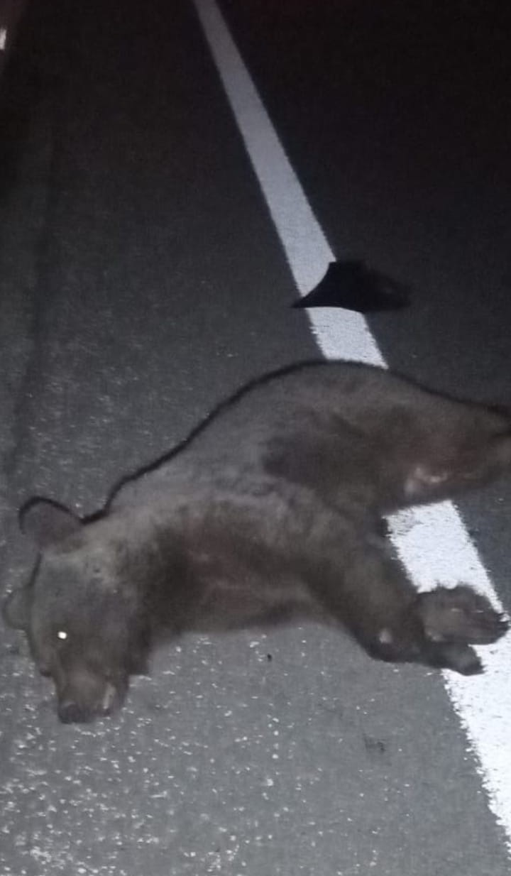 Bursa'nın İnegöl ilçesinde, otomobilin çarptığı yavru ayı telef oldu.