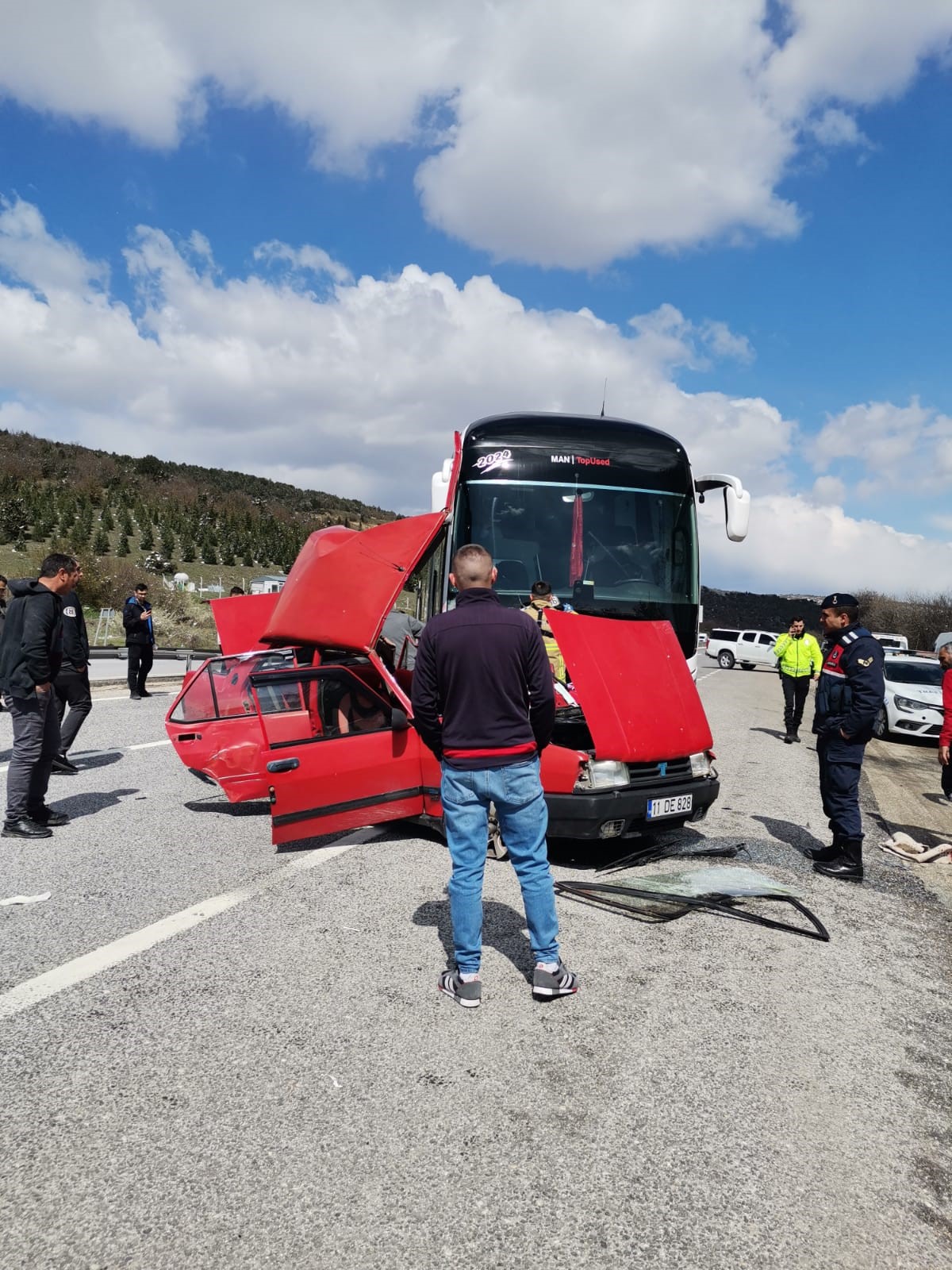 Bilecik'in Bozüyük ilçesinde yolcu otobüsü ile otomobilin çarpışması sonucu meydana gelen trafik kazasında 1 kişi