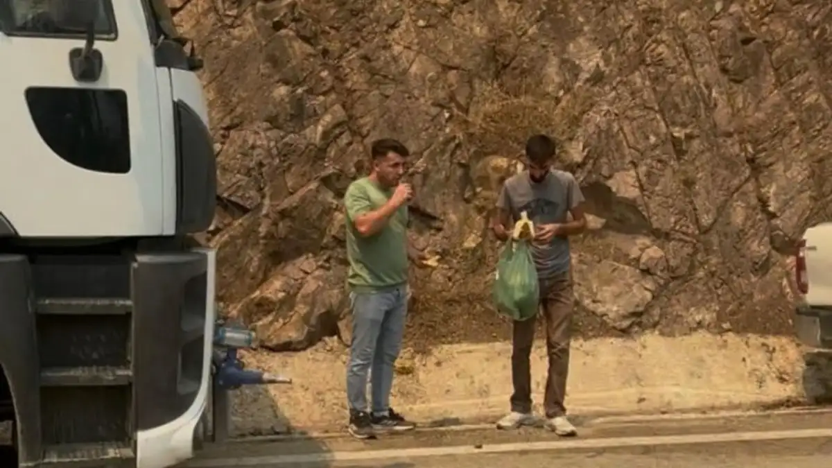 Yangın kahramanları kendi paraları ile aldıkları suları dağıtıyorlardı