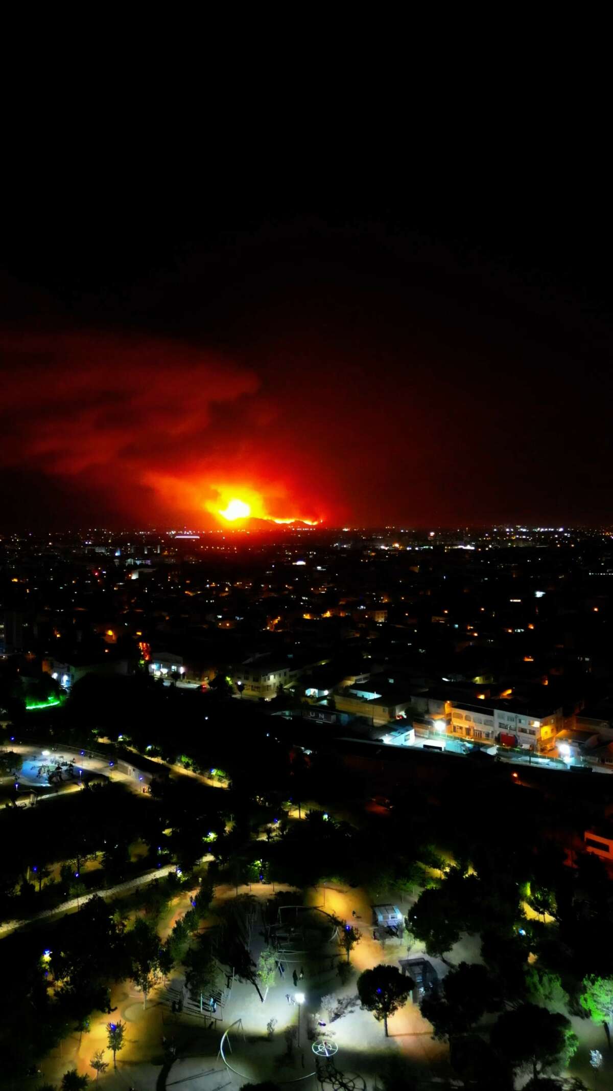 Bursa'nın Gürsu ilçesindeki ormanlık alandaki yangında, patlamalar dron ile havadan kayda alındı.