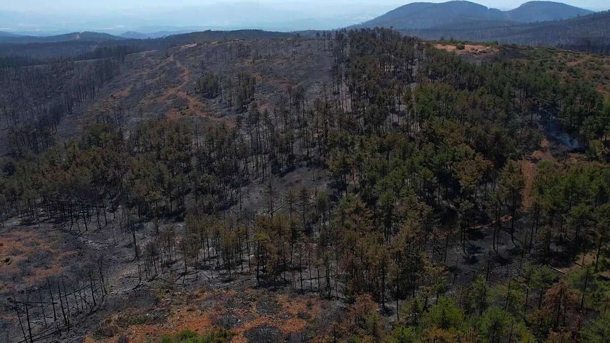 Bursa'nın Gürsu ilçesinde tarihi yangının etkisini gözler önüne seren, ormanın eski yemyeşil ve şu anki