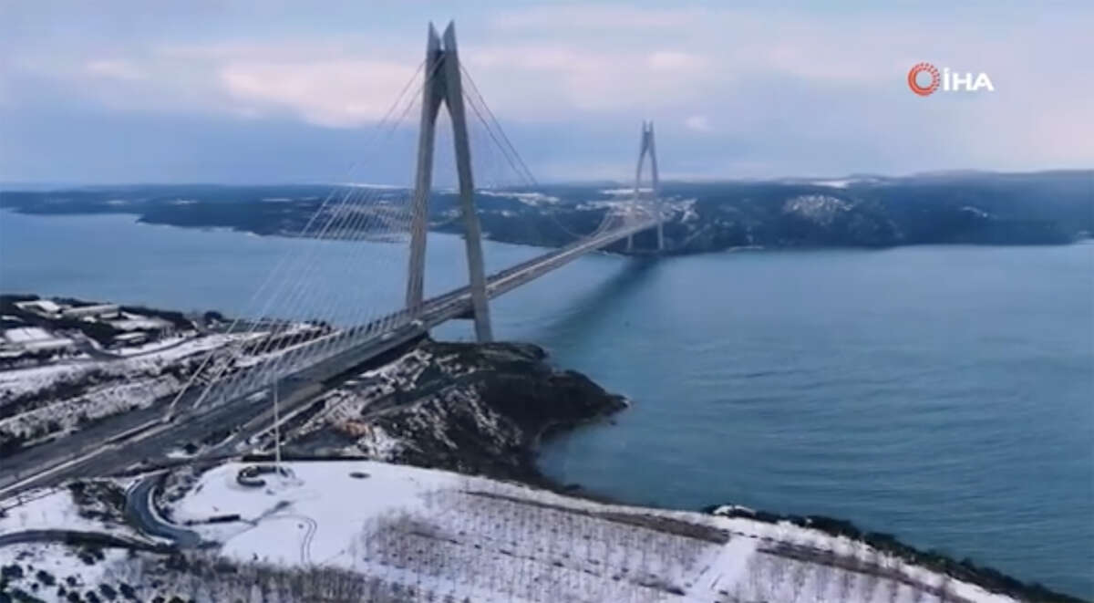 İstanbul’da etkili olan kar yağışı ile Yavuz Sultan Selim Köprüsü’nün çevresi beyaza büründü. Havadan çekilen