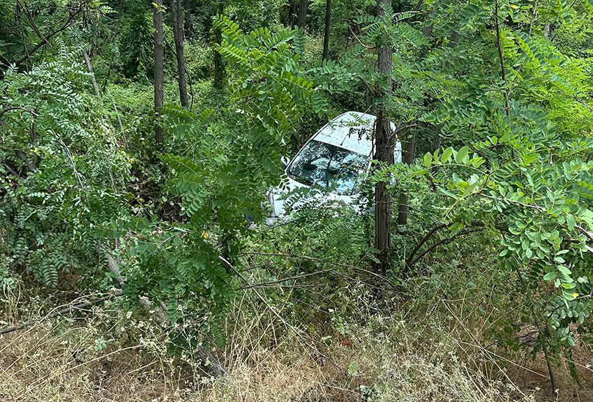 Boyalıca Mahallesi'nde kontrolden otomobil, zeytin bahçesine uçtu. Şoför ve yanındaki kız arkadaşı yara almadan kazayı