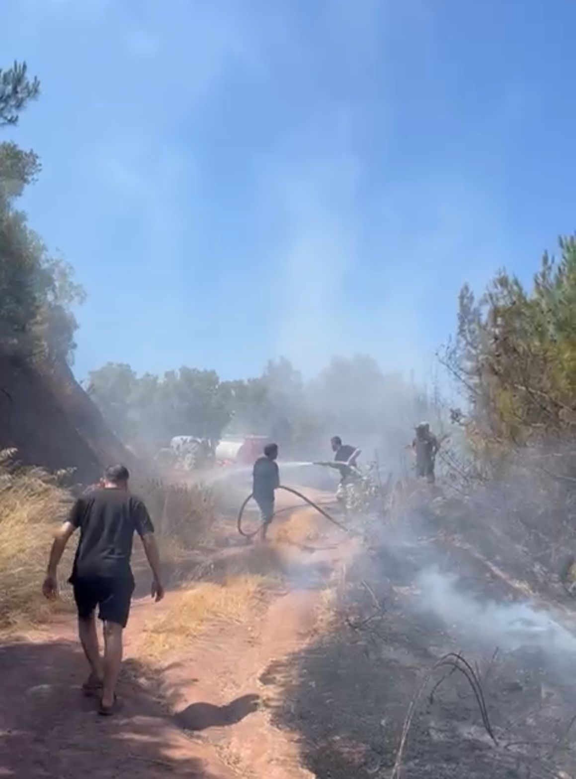 Bursa'nın Orhaneli ilçesinde piknik yapan bir ailenin mangalıdan sıçradığı iddia edilen yangın, kısa sürede büyüdü.