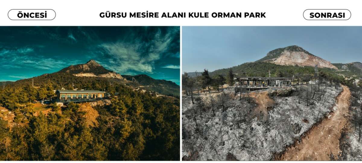 Bursa'nın Gürsu ilçesinde tarihi yangının etkisini gözler önüne seren, ormanın eski yemyeşil ve şu anki