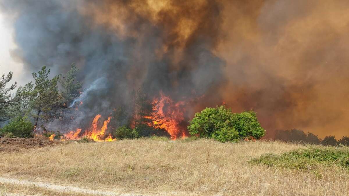 Bursa’nın Karacabey ilçesinde çıkan orman yangını şiddetli rüzgarın etkisiyle kısa sürede büyüyerek Akçasusurluk köyüne doğru