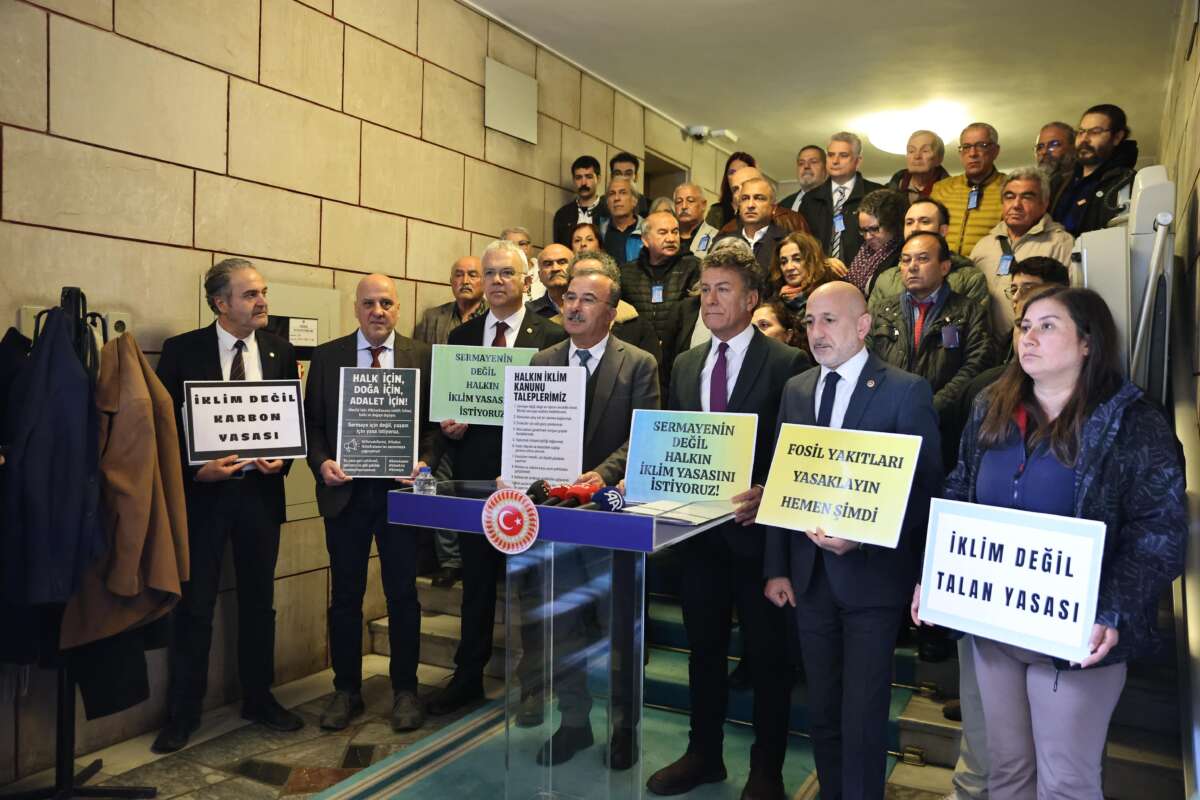 CHP Bursa Milletvekili Orhan Sarıbal, TBMM'de düzenlenen ortak basın toplantısında, Meclis’te görüşmeleri süren İklim Kanunu