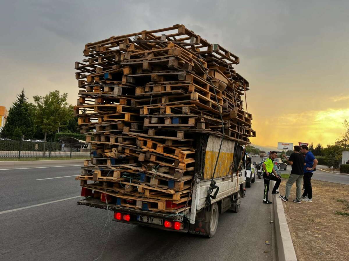 Bursa'nın İnegöl ilçesinde tehlikeli şekilde yük taşıyan kamyonetin sürücüsüne ceza yağdı.