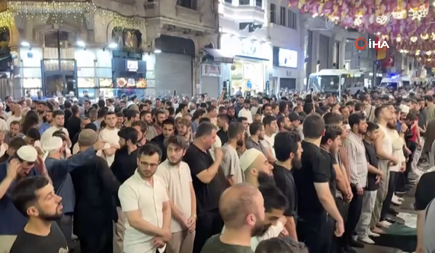 Leman dergisinin Peygamber Efendimizin karikatürünü çizmesine tepki gösteren vatandaşlar, dergi binası önünde toplandı.