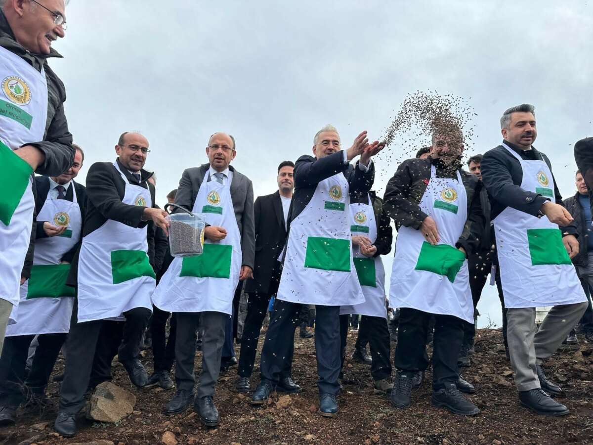 Konuşmaların ardından Bursa Valisi Erol Ayyıldız, AK Parti İl Başkanı Davut Gürkan, Karacabey, Şahan, çocuklar ve diğer törene katılanlar, hazırlanan alana tohum serpti.