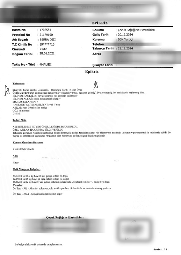 İfade veren okul öğretmenlerinden birinin Berra’nın olaydan 8 ay önce 20 aralık 2024 tarihinde epilepsi nöbeti geçirdiği iddialarının asılsız olduğunu aktaran anne Beyza Turan ise o tarihte kızının epilepsiden değil burun akıntısı ve öksürük şikayetiyle hastaneye kendisinin götürdüğünü hastanede soğuk algınlığına bağlı tedavi gördüğünün belgeleriyle sabit olduğunu aktardı.
