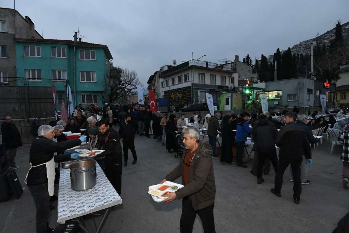 Osmangazi Belediyesi tarafından Alacahırka Pazar Alanı’nda düzenlenen iftar programında vatandaşlar, Ramazan’ın bereketini ve paylaşma kültürünü aynı sofrada buluşarak hissetti. İftar saatinin yaklaşmasıyla birlikte pazar alanını dolduran mahalle sakinleri kurulan uzun sofralarda yerlerini alırken, programa katılan Osmangazi Belediye Başkanı Erkan Aydın’a belediye başkan yardımcıları ve meclis üyeleri eşlik etti.