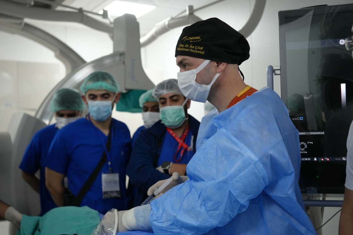 Girişimsel Radyoloji Bilim Dalı Öğretim Üyesi Doç. Dr. İsa Çam koordinesinde gerçekleşen etkinlik kapsamında, karaciğer, böbrek, tiroit ve paratiroit tümörlerinde uygulanan ve halk arasında “iğne ile yakma” olarak bilinen tedavi yöntemi, canlı vakalar eşliğinde katılımcılara gösterildi. Yaklaşık yarım saat süren operasyonla tümörün iğne deliğinden girilerek yakılması işlemi, yabancı hekimler tarafından ilgiyle takip edildi.