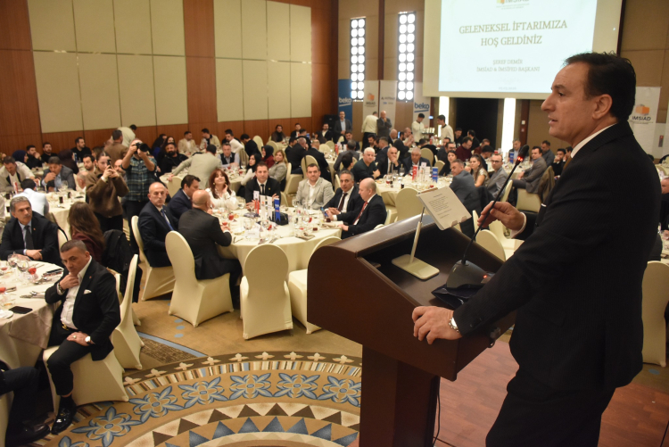 Programda Arçelik, Beko Enerji Çözümleri Direktörü Ufuk Rıza Sivrikaya’nın selamlama konuşmasının ardından söz alan İMSİAD ve İMSİFED Yönetim Kurulu Başkanı Şeref Demir, tüm İslam Alemi’nin Ramazan Ayı’nı kutlayarak sözlerine başladı. İMSİAD olarak yalnızca yapı üretmediklerini, projeler geliştirdiklerini belirten Şeref Demir, “Bünyemizde sektörün bir çok alanında faaliyet gösteren, üreten, inşa eden firmalarımız var. Ülke ekonomimize gururla katkı sağlıyoruz. Bizler yalnızca müteahhitlik faaliyetleri yürüten bir yapı değiliz, akademik odalarımızla, meslek odalarımızla, mühendislik ve mimarlık firmalarımızla ortak akıl yoluyla çalışmalar yürütüyoruz. Tecrübe ve bilgi paylaşımları ile daha güvenli, daha planlı ve nitelikli yapılar ortaya çıkarmaya çalışıyoruz” dedi.