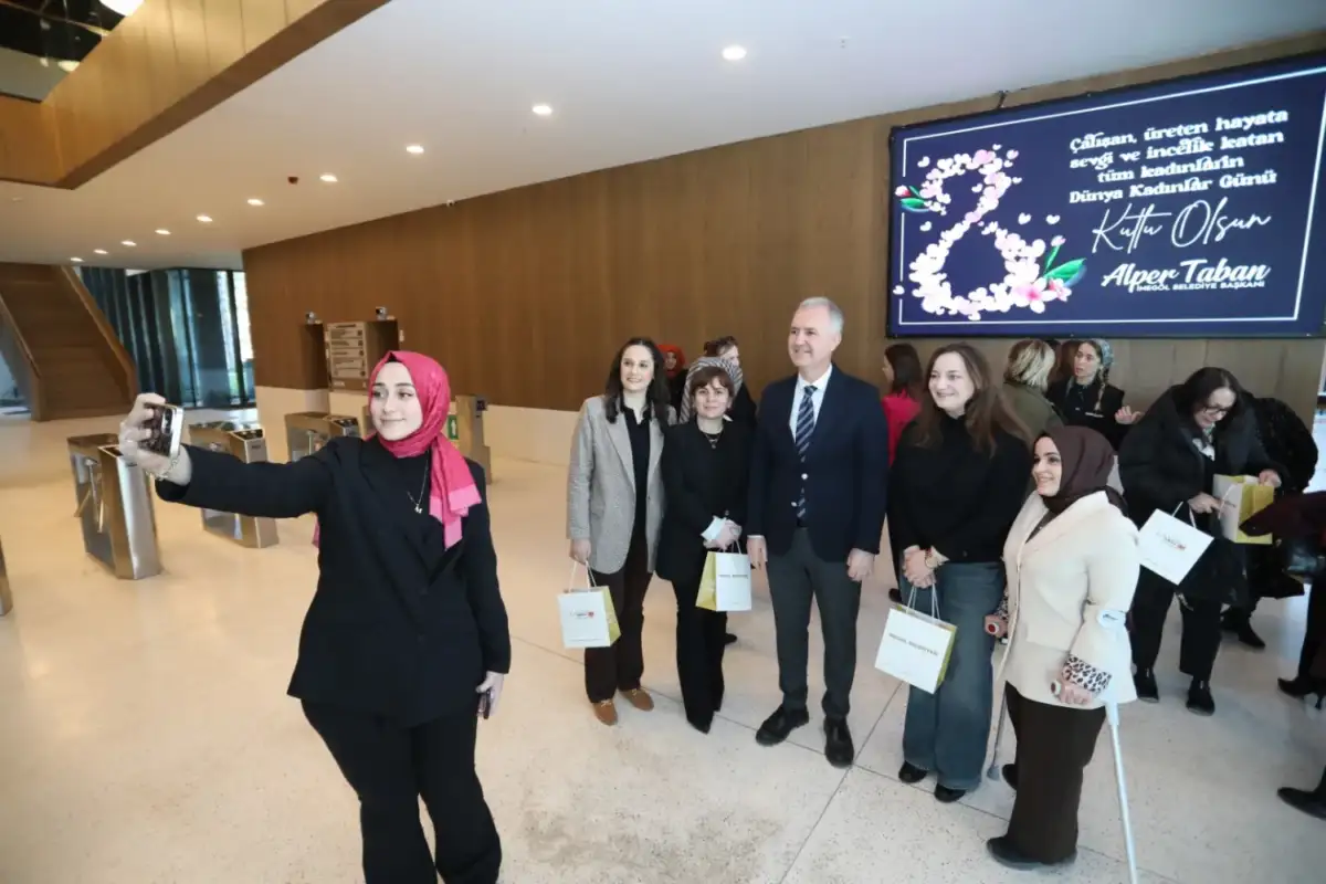 Konuşma sonrası Başkan Taban kadın çalışanlara günün anısına hediye takdimi gerçekleştirdi.