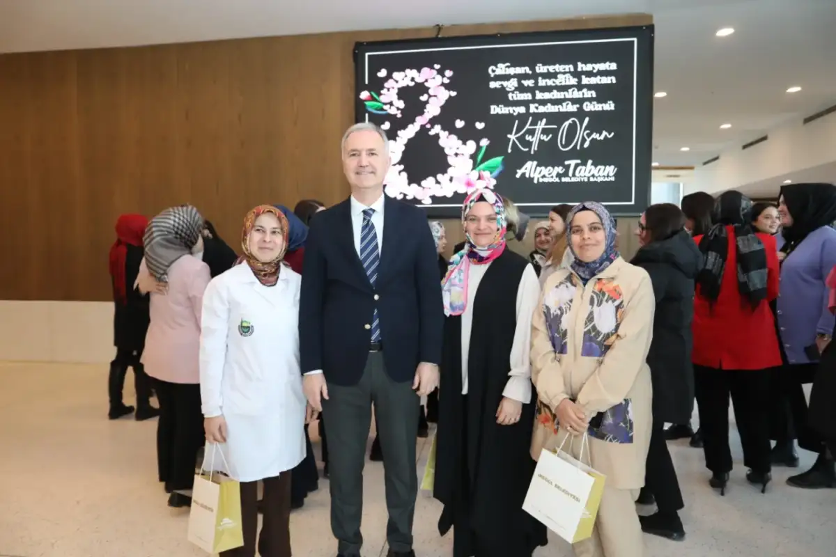 Konuşma sonrası Başkan Taban kadın çalışanlara günün anısına hediye takdimi gerçekleştirdi.