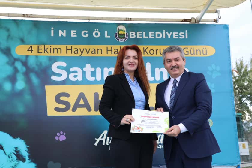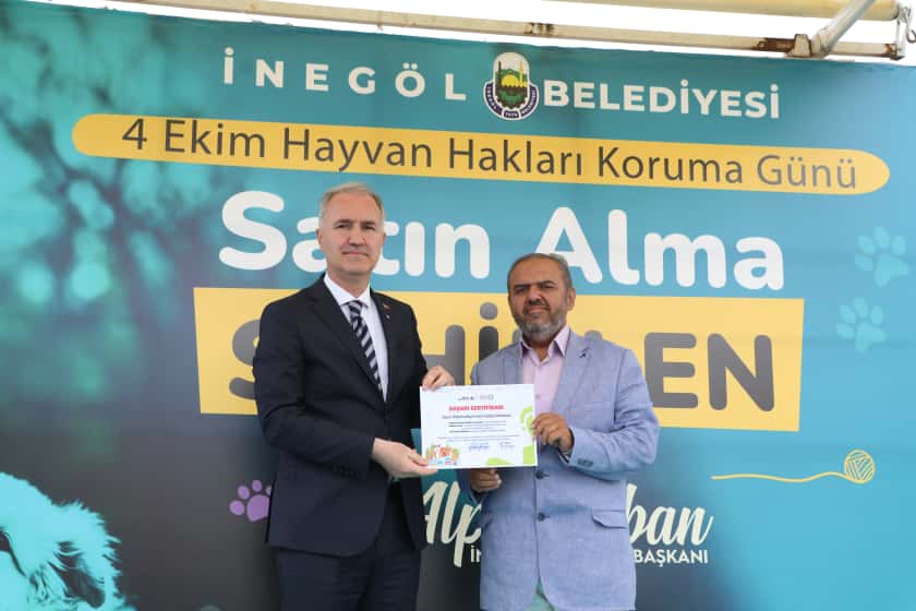 Bugün ilçe protokolü ve öğrencilerin ağırlıklı olarak katıldığı programla kutlanan 4 Ekim Hayvanları Koruma Günü kapsamında, aynı zamanda ilçedeki okullarda sokak hayvanlarıyla ilgili yapılan çeşitli yarışmalarda dereceye giren okul ve öğrencilere belge ve hediye takdimleri yapıldı. Aynı zamanda İnegöl Belediyesi ile Kent Konseyi iş birliğinde, Kent Konseyi Başkanı Bülent Temelli ile Sokak Hayvanları Çalışma Grubu Başkanı Şebnem Erkal tarafından başlatılan “Kalbine Misafir Olmaya Geldim” kampanyasıyla kurumların sahiplenme sürecine dahil olması hedeflendi. Bu kapsamda Kaymakam Eren Arslan ve Belediye Başkanı Alper Taban da kurumları adına kedi ve köpek sahiplendiler.