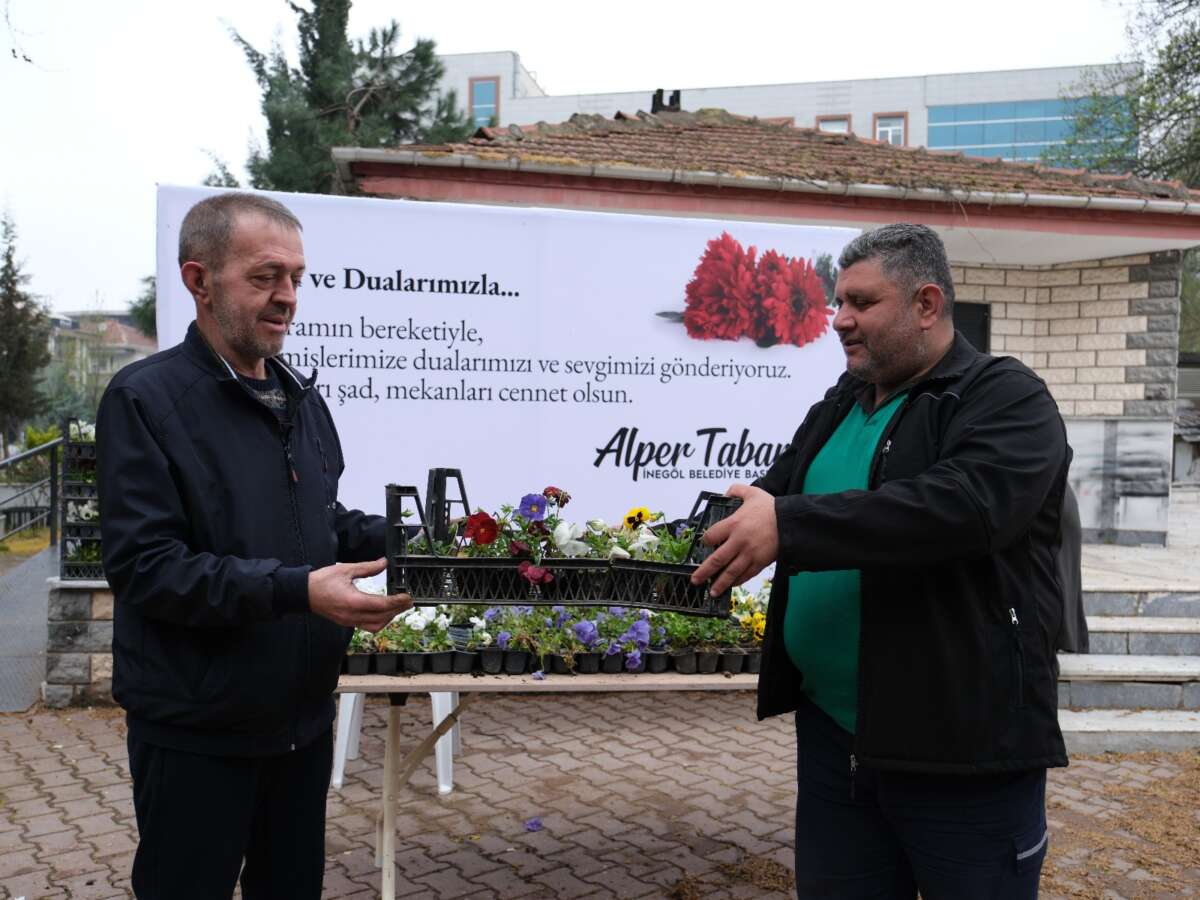 İnegöl Belediyesi Ramazan Bayramı arifesinde yoğun olarak ziyaret edilen mezarlıklarda vatandaşlara ücretsiz çiçek dağıtarak, sevdiklerini kaybedenlere moral kaynağı oldu.