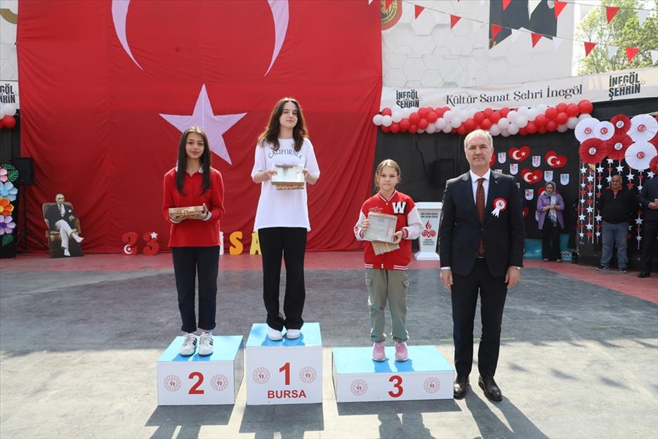 İnegöl’de gerçekleştirilen kutlamalar, çocukların mutluluğu ve coşkusu ile bayram havasını tam anlamıyla yansıtırken program sonunda ise farklı branşlarda derece elde eden öğrencilere protokol üyeleri tarafından ödülleri teslim edildi.