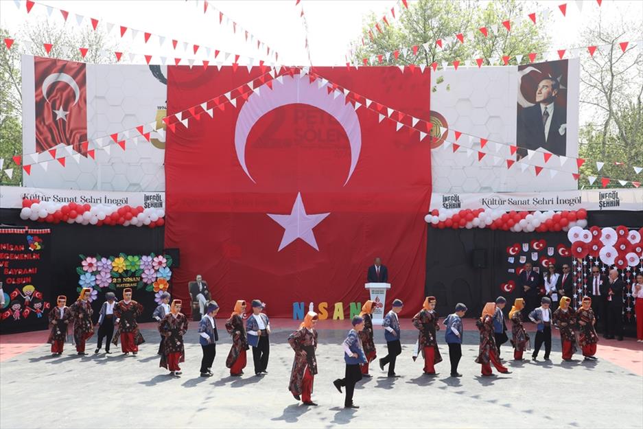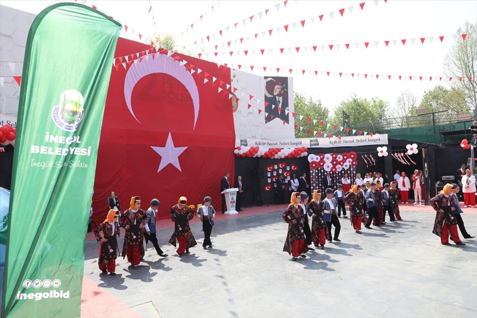 Türkiye Büyük Millet Meclisi’nin açılışının 105. yılına denk gelen ve çocuklara bayram olarak armağan edilen bu özel gün, İnegöl’de düzenlenen resmi törenler ve renkli etkinliklerle taçlandırıldı. Resmi kutlama programı, Atatürk Anıtı’nda gerçekleştirilen çelenk sunma töreniyle başladı. Ardından Kültür Park Amfi Tiyatro’da Vehbi Koç İlkokulu tarafından hazırlanan gösterilerle devam etti. Etkinliklere İnegöl Kaymakamı Eren Arslan, Belediye Başkanı Alper Taban, İlçe Milli Eğitim Müdürü Halil İbrahim Zengin, protokol üyeleri ve ilçe halkı yoğun katılım gösterdi.