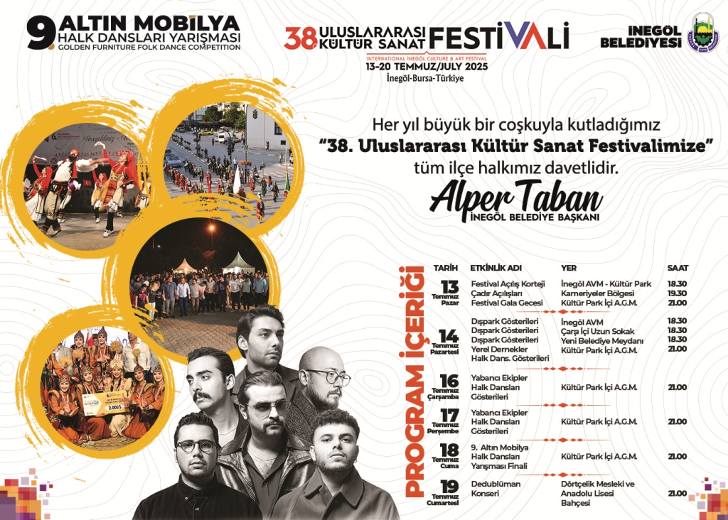Festivalin lansman toplantısında konuşan İnegöl Belediye Başkanı Alper Taban, Uluslararası Kültür Sanat Festivali’nin yalnızca bir eğlence organizasyonu olmadığını vurgulayarak, hoşgörü, birlikte yaşama kültürü ve toplumsal dayanışmanın önemli bir sembolü olduğunu ifade etti. Başkan Alper Taban konuşmasında , “İnegöl, 81 vilayetten, Kafkaslardan, Balkanlardan ve dünyanın farklı coğrafyalarından insanların bir arada huzur içinde yaşadığı nadir şehirlerden biridir. Bu zenginlik ve çeşitlilik, şehrimizin en büyük gücüdür. İşte bu güzelliği en iyi şekilde yansıtan etkinliklerin başında Kültür Sanat Festivalimiz geliyor. Her yıl olduğu gibi bu yıl da birliğimizi, kardeşliğimizi ve kültürel mirasımızı pekiştirecek olan festivalimize tüm vatandaşlarımızı davet ediyoruz. Her ne kadar İnegöl Belediyesi bu işin merkezinde olsa da kültür derneklerimiz de kalbindedir. Katkı ve destek sağladıkları için her bir derneğimize teşekkür ediyorum. 13-20 Temmuz tarihleri arasında düzenlenecek festivalde, tüm vatandaşlarımızı bu büyük kültür buluşmasına ortak olmaya bekliyoruz.” dedi.