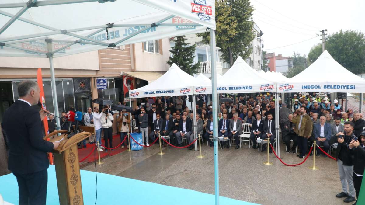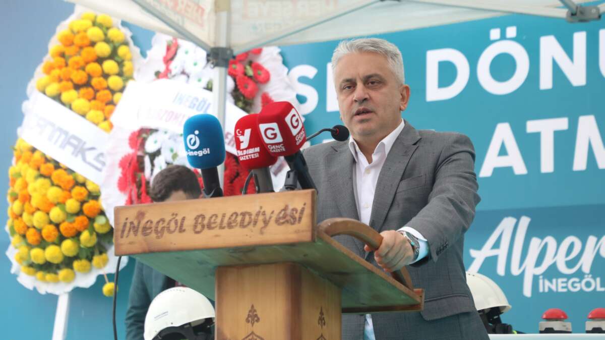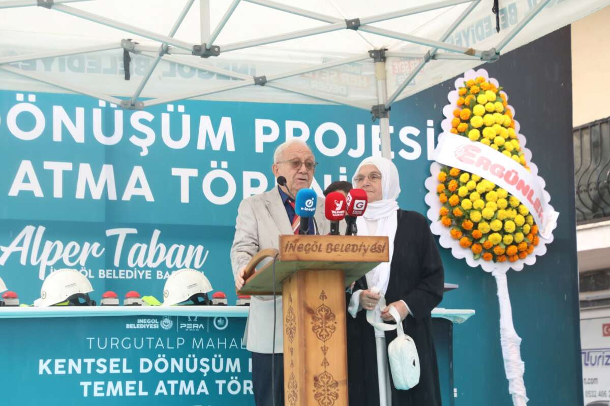 Temel atma töreninde kürsüye gelen İnegöl Belediye Başkanı Alper Taban ise şehrin kentsel dönüşüm serüveni ve temeli atılan projeye ilişkin bilgiler paylaştı. “Bugün şehrimiz için çok önemli bir gün” diyen Başkan Taban, şöyle konuştu: “Çok heyecanlıyız. Kentsel dönüşüm ülkemizin pek çok yerinde yapılıyor ama İnegöl adına bir ilk olacak. 153 dönümlük bir alanda dönüşümü gerçekleştireceğiz. Bir Belediye Başkanı için en kolayı nedir? Suya sabuna dokunmazsınız, herkes evlerinde yaşamaya devam eder. Kimsenin bir tepkisi, sitemi olmaz. Dolayısıyla kentsel dönüşüme de ihtiyaç olmaz. Ama biz AK Parti olarak, İnegöl Belediyesi olarak böyle düşünmüyoruz. Sayın Cumhurbaşkanımızın bize verdiği talimatlar doğrultusunda şehirlerimizi daha dirençli kılmak için canla başla çalışıyoruz. Bu çalışmaların ön hazırlığını geçen dönem tamamladık. Bursa bölgesinde Kentsel Dönüşüm Strateji Belgesini Bakanlığa ilk sunan belediye olduk.”