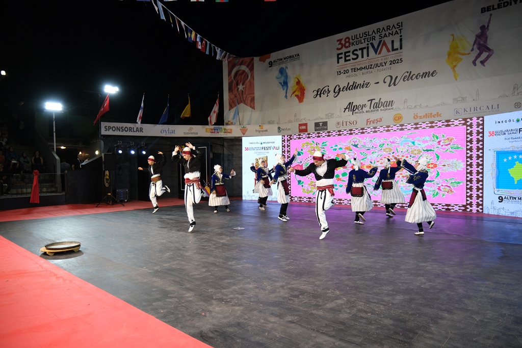 38. Uluslararası Kültür Sanat Festivali’nin dördüncü gününde İnegöl, yabancı halk dansları gösterileri, yöresel tatlı yarışması ve hemşehri derneklerinin kültürel sunumlarıyla renkli bir geceye ev sahipliği yaptı. Farklı kültürlerin kardeşçe buluştuğu gecede, paylaşma ve dayanışma duyguları ön plana çıktı.