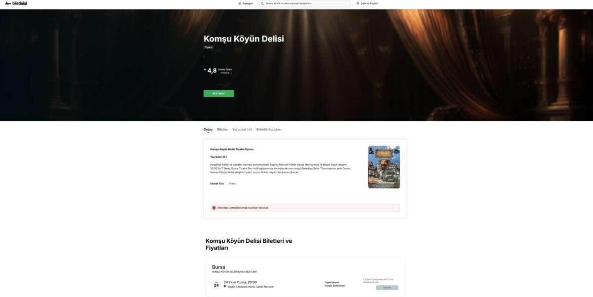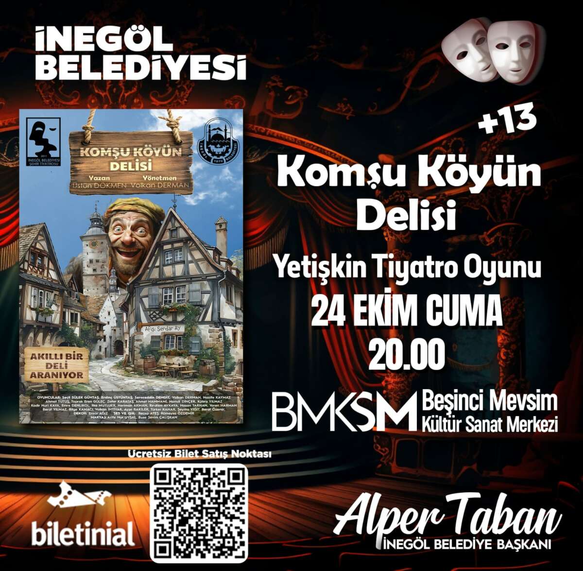 Ücretsiz biletler 22 Ekim Çarşamba günü saat 09.00’da biletinial.com üzerinden satışa açılacak. İnegöl Belediye Başkanı Alper Taban, vatandaşları bu keyifli etkinliğe davet ederek, “İnegöl Belediyesi olarak her ay düzenlediğimiz kültür sanat programlarımızla şehrimizi sanatla buluşturmaya devam ediyoruz. Tiyatro, müzik ve sahne sanatlarıyla dolu bu etkinlikler, vatandaşlarımızın kültürel yaşamına değer katıyor. Tüm vatandaşlarımızı bu güzel tiyatro akşamına davet ediyorum.” dedi.