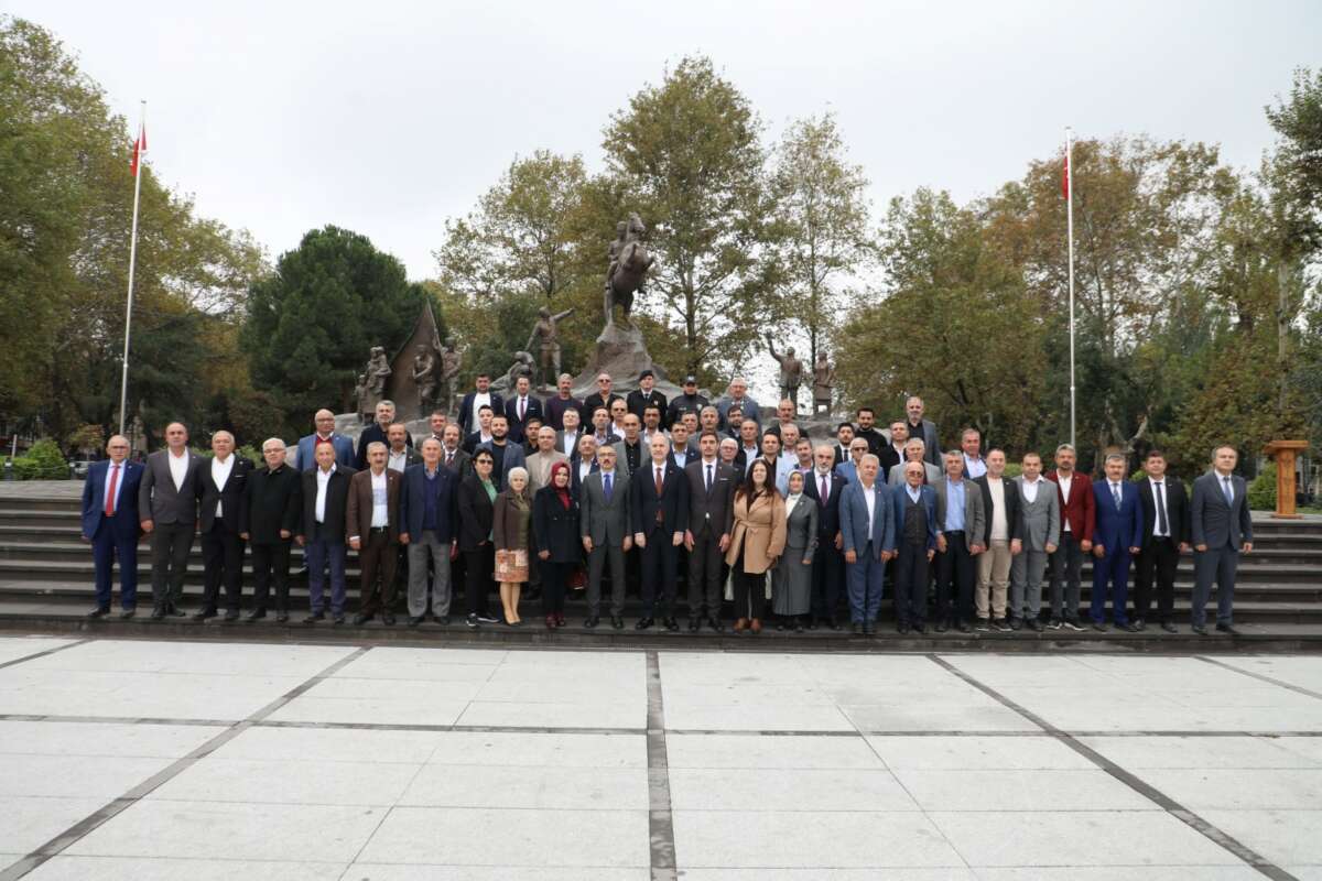Saygı Duruşu ve İstiklal Marşının okunmasıyla başlayan törende, Muhtarlar Derneği Başkanı Oktay Garip anıta çelenk sunumunu yaptı. Ardından günün anlam ve önemine ilişkin bir konuşma yapan Oktay Garip, “Muhtarlık müessesesi 1829’dan günümüze bu topraklarda aziz milletimize hizmetini sürdürmektedir. Genel ve yerel sorunların ilgili kurum ve kuruluşlara iletilmesine köprü rolü oynayan muhtarlık müessesesi, Osmanlı’dan günümüze taşınan önemli bir yerel yönetim birimidir. Yerel yönetimlerin mihenk taşları olan köy ve mahalle muhtarlıklarımız vatandaşlarımızın ilk devlet ve hizmet kapısıdır. Muhtarlarımız köylerimizde ve mahallelerimizde özveriyle çalışmış, devletimizin her zaman gören gözü, işiten kulağı olmuştur. Her geçen gün büyüyen bu güzel şehirde milletimizden aldığımız güçle 116 muhtarımız ile görevimizi yerine getirmekte, milletimizin acısıyla hüzünlenip, derdiyle dertlenip, sevinciyle sevinmekteyiz. Muhtar siyasetten uzak, tarafsız, tamamen kendi kişiliğiyle toplumda kabul görmüş halkın güvenoyu ile seçilmiş en önemli kanaat önderidir. Yerel yönetimin kılcal damarı ve demokrasinin temel taşıdır. Bu büyük camianın bir parçası olmaktan onur ve gurur duyuyoruz. Türkiye Cumhuriyeti Devletinin banisi Ulu Önder Gazi Mustafa Kemal Atatürk’ün demiş olduğu gibi; muhtar, demokrasinin temel taşıdır” dedi.