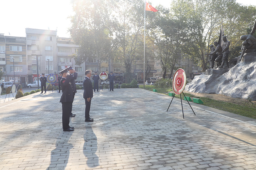 Bir milletin küllerinden doğuşu olan 30 Ağustos Zafer Bayramımızın 103. Yıldönümü kutlamaları bu sabah İnegöl’de düzenlenen resmi törenlerle başladı. Büyük zaferin coşkusunun yaşandığı ilk tören, saat 09.00’da Atatürk Anıtı önünde gerçekleştirildi. İnegöl Kaymakamı Eren Arslan, İnegöl Belediye Başkanı Alper Taban, Cumhuriyet Başsavcısı Veli Ecir, İnegöl Ağır Ceza Mahkemesi Başkanı İsmail Aydın, Garnizon Komutanı Havacı Piyade Binbaşı Mert Karayel, siyasi partilerin başkan ve yöneticileri, Muharip Gaziler Derneği İnegöl Temsilciliği üyesi Gaziler ile ilçe protokolünün katıldığı törende sırasıyla Kaymakamlık, Garnizon Komutanlığı ve Belediye Başkanlığı çelenkleri anıta sunuldu. Ardından saygı duruşunda bulunularak İstiklal Marşı okundu.