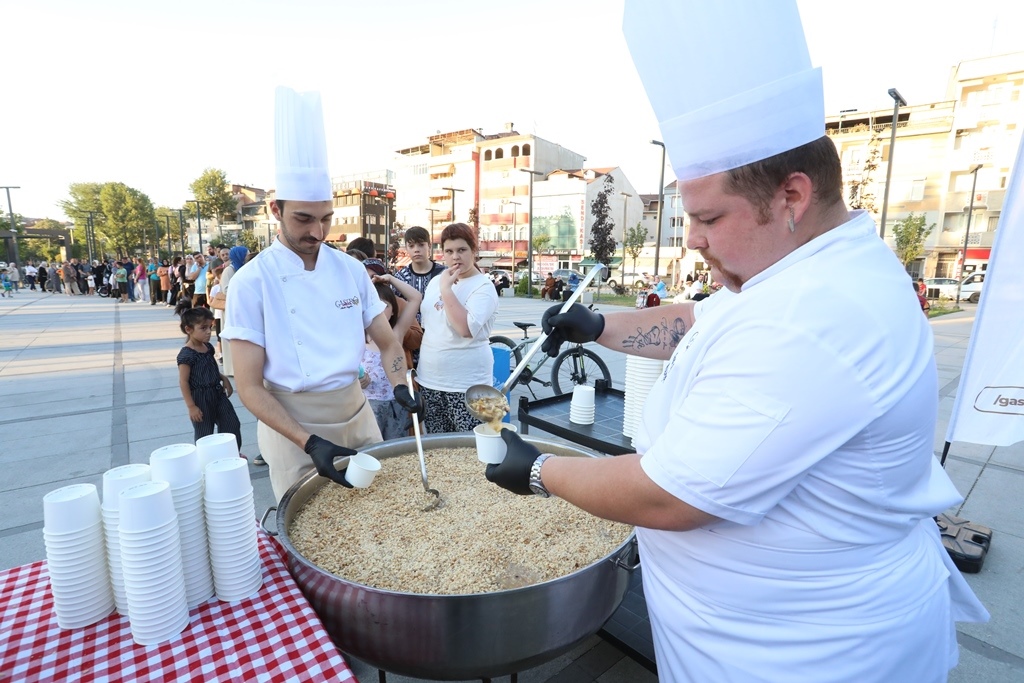 İkram noktası olarak tercih edilen Merkez Park ve Heykel Meydanı, İnegöl Belediyesi’nin yaptığı çevre düzenleme çalışmaları sonrası şehrin yeni buluşma noktası haline gelirken, aşure etkinliğiyle bu alan adeta bir kardeşlik sofrasına dönüştü.Etkinliğe İnegöl Kaymakamı Eren Arslan, Belediye Başkanı Alper Taban, AK Parti İnegöl İlçe Başkanı Mustafa Durmuş, parti yöneticileri, belediye meclis üyeleri ve çok sayıda vatandaş katıldı. Katılımcılar, birlik ve beraberliğin simgesi olan bu özel günde aynı kazan etrafında buluşmanın manevi hazzını yaşadı.