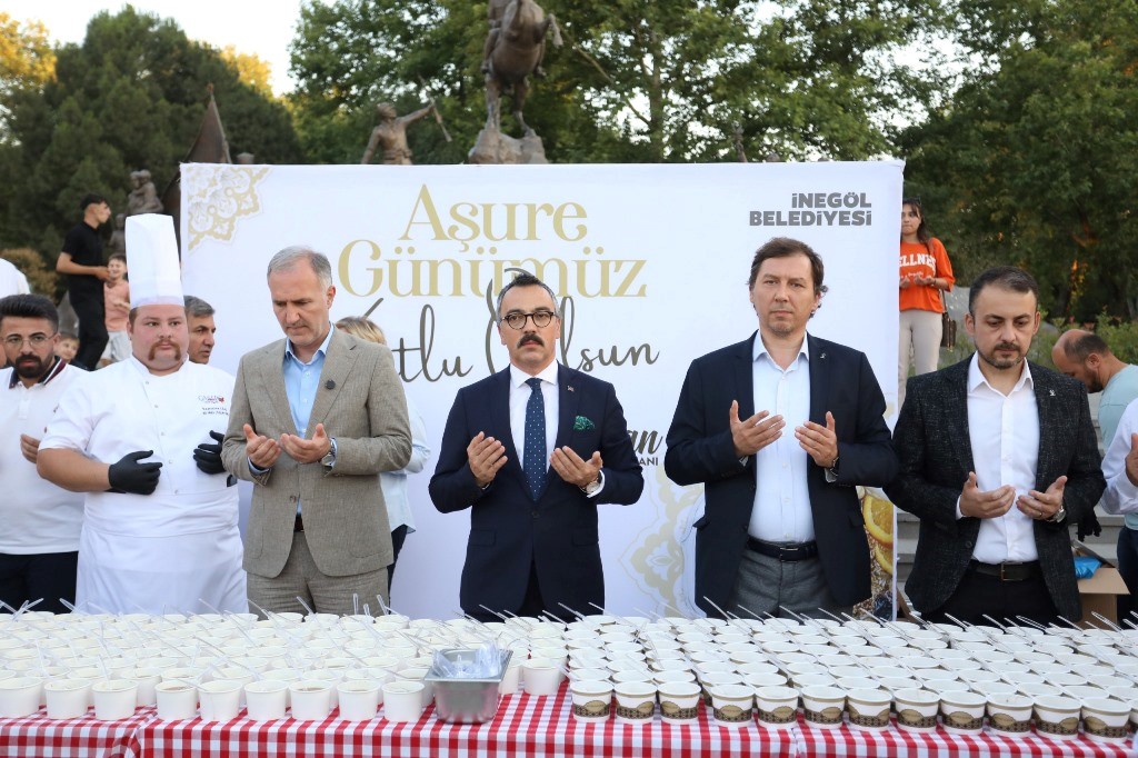 Alanda vatandaşlarla bir araya gelen İnegöl Belediye Başkanı Alper Taban, aşurenin anlamına ve Muharrem Ayı’nın maneviyatına vurgu yaptı. Başkan Alper Taban konuşmasında, “Şehadetlerinin 1386. yılında Kerbela da şehit düşen Hz. Hüseyin Efendimizi ve tüm Kerbela şehitlerini ve vatanı uğruna kahramanca savaşan tüm şehitlerimizi rahmetle anıyoruz. Aşure Günü birlik, dayanışma ve kardeşlik günüdür. Aşure ise bu birlikteliğin tatlı bir simgesidir. Nasıl ki farklı tatlar bir araya gelerek aşureyi oluşturuyorsa İnegöl’ümüz de 81 vilayetten, Balkanlardan, Kafkaslardan ve dünyanın dört bir yanından gelen vatandaşlarımızla huzur içinde yaşayan örnek bir şehir. Devletimiz, tüm mazlum coğrafyalara el uzatmaya devam ediyor. Filistin ve Gazze’deki kardeşlerimiz için de dua ediyor, barış ve özgürlük diliyoruz.” dedi.
