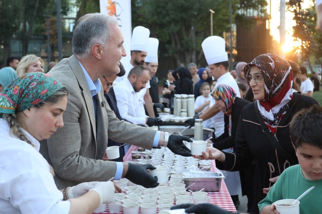 Dağıtımın gerçekleştirildiği Merkez Park ve Heykel Meydanı’nın yenilenerek vatandaşların hizmetine sunulduğunu hatırlatan Başkan Taban, “Yenileyerek halkımızın hizmetine sunduğumuz Merkez Park ve Heykel Meydanı, özellikle yaz akşamlarında vatandaşlarımızın dinlenmek ve sosyalleşmek için tercih ettiği bir cazibe merkezi haline geldi. Bugün de bu güzel ortamda aşurenin bereketinde buluştuk. Rabbim birliğimizi ve beraberliğimizi daim eylesin.” dedi.